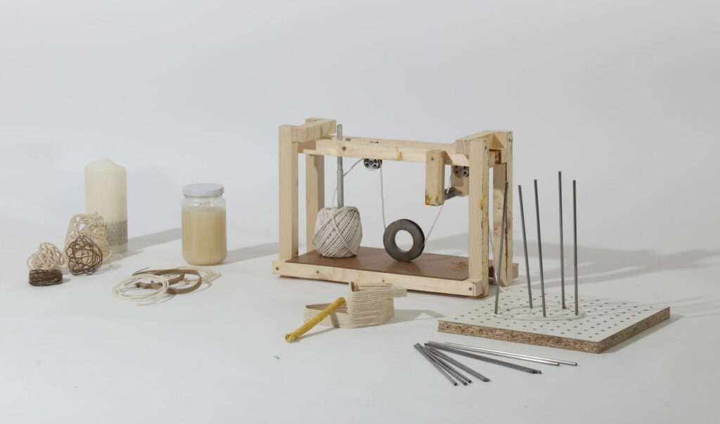 Pour explorer pleinement l’autoproduction, la machine et la colle ont été mises au point et fabriquées pour le projet.