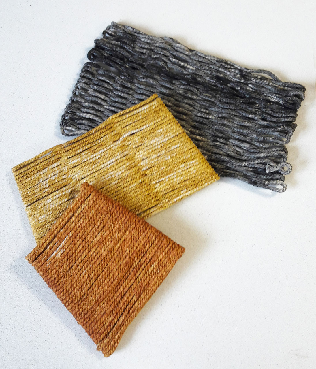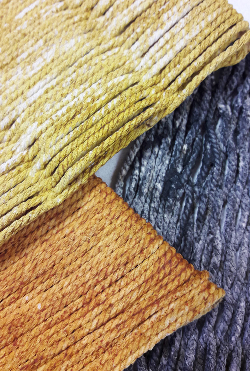 Corde de coton, colle de farine, pigments naturels